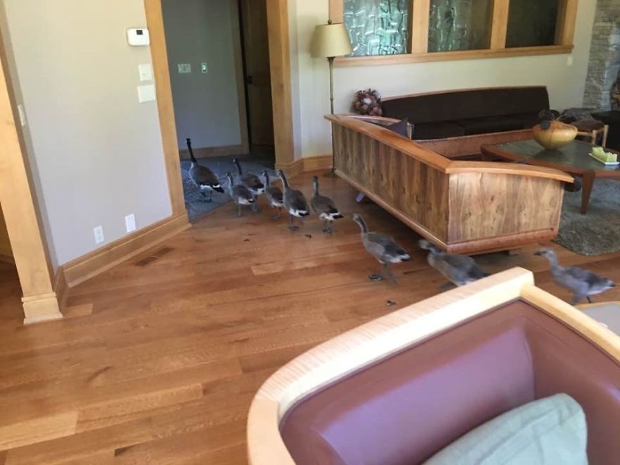 A Deschutes folyó partján élő családnál sem volt ez másképp. Viszont egyik nap arra lettek figyelmesek, hogy egy csapat kanadai lúd jelenik meg a bejáratnál, majd mintha a világ legtermészetesebb dolga lenne vonultak át a házon.