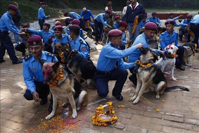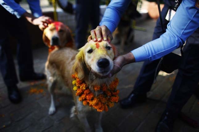 A Tihar, a fények ötnapos ünnepe, aminek egyik napjának főszereplői a kutyusok.