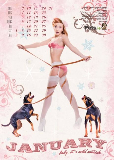 Melissa Hayward ötletéből készítettek naptárt, amin, a negyvenes évek stílusában szerepelnek csinos nők kutyákkal, hogy az ebből befolyó összegből az Ash Animal Rescue nevű szervezetet támogassák, ahonnan az ő kutyája is van. Szeretnék, ha nem altatnának el kutyákat, ezért próbálják plusz bevételhez juttatni a menhelyet, hogy legyen elegendő forrás az állatok ellátására. A képek készítésében résztvevő modellek, fotósok, sminkesek és egyéb közreműködők, lemondtak az ezért járó fizetségükről is, hogy ezzel is segítsenek. Nagyon szép gesztus, remek végeredmény: