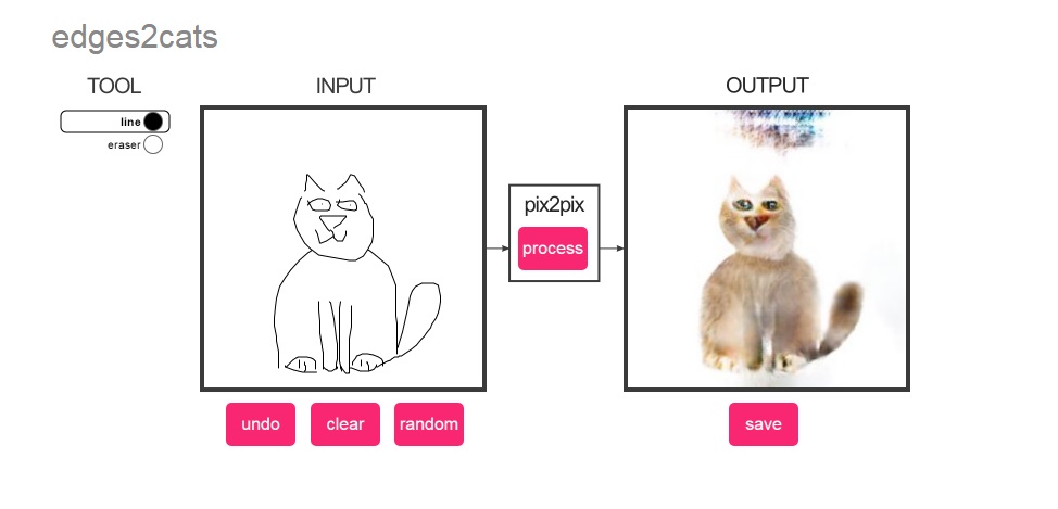 Egyszerű vonalrajzokat tesz élethűbb művekké. Az oldal használata egyszerű, nem kell letölteni semmit, ide kattintva megnyílik simán böngészőben és ott le kell görgetni az edges2cats részig: