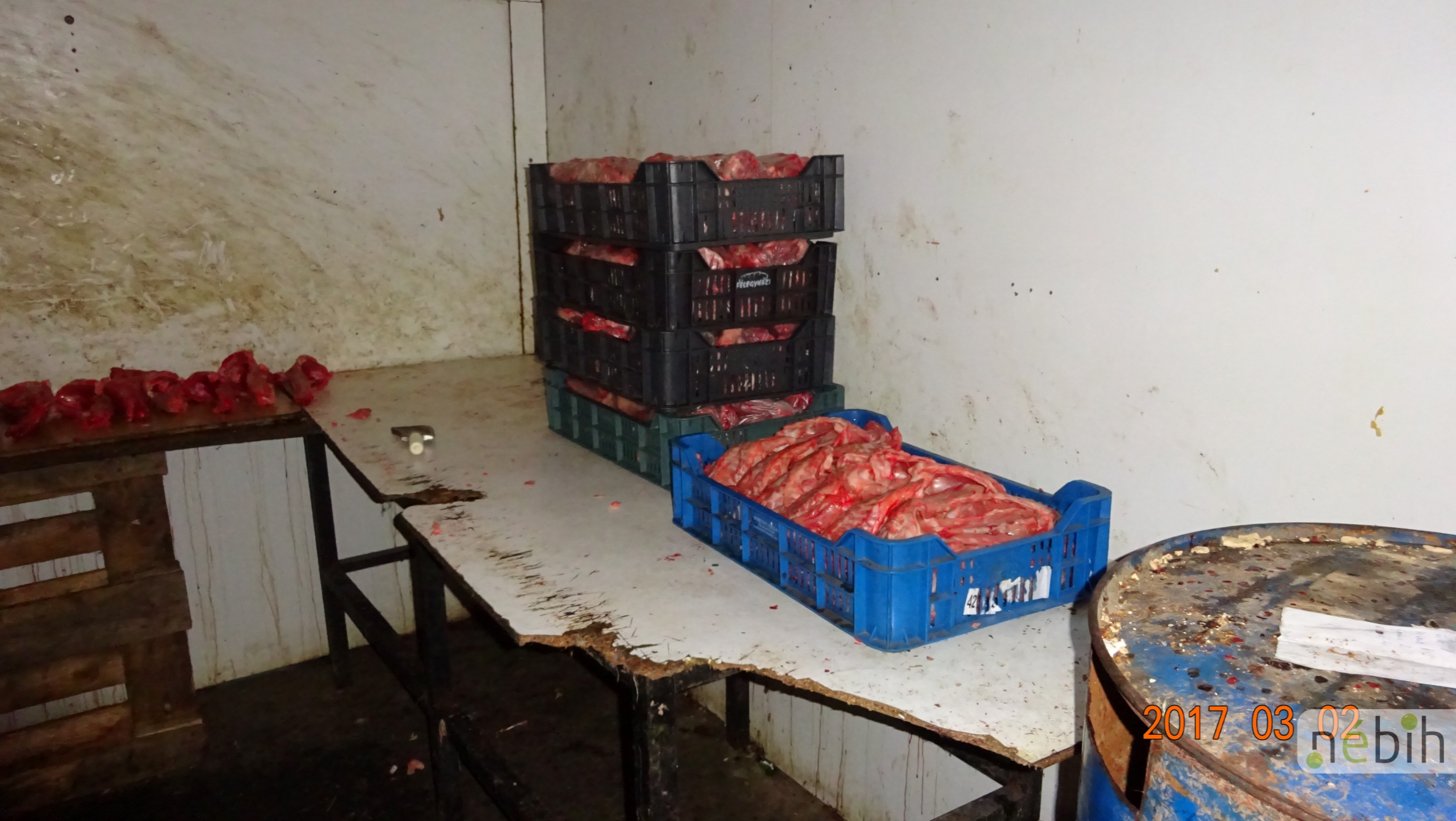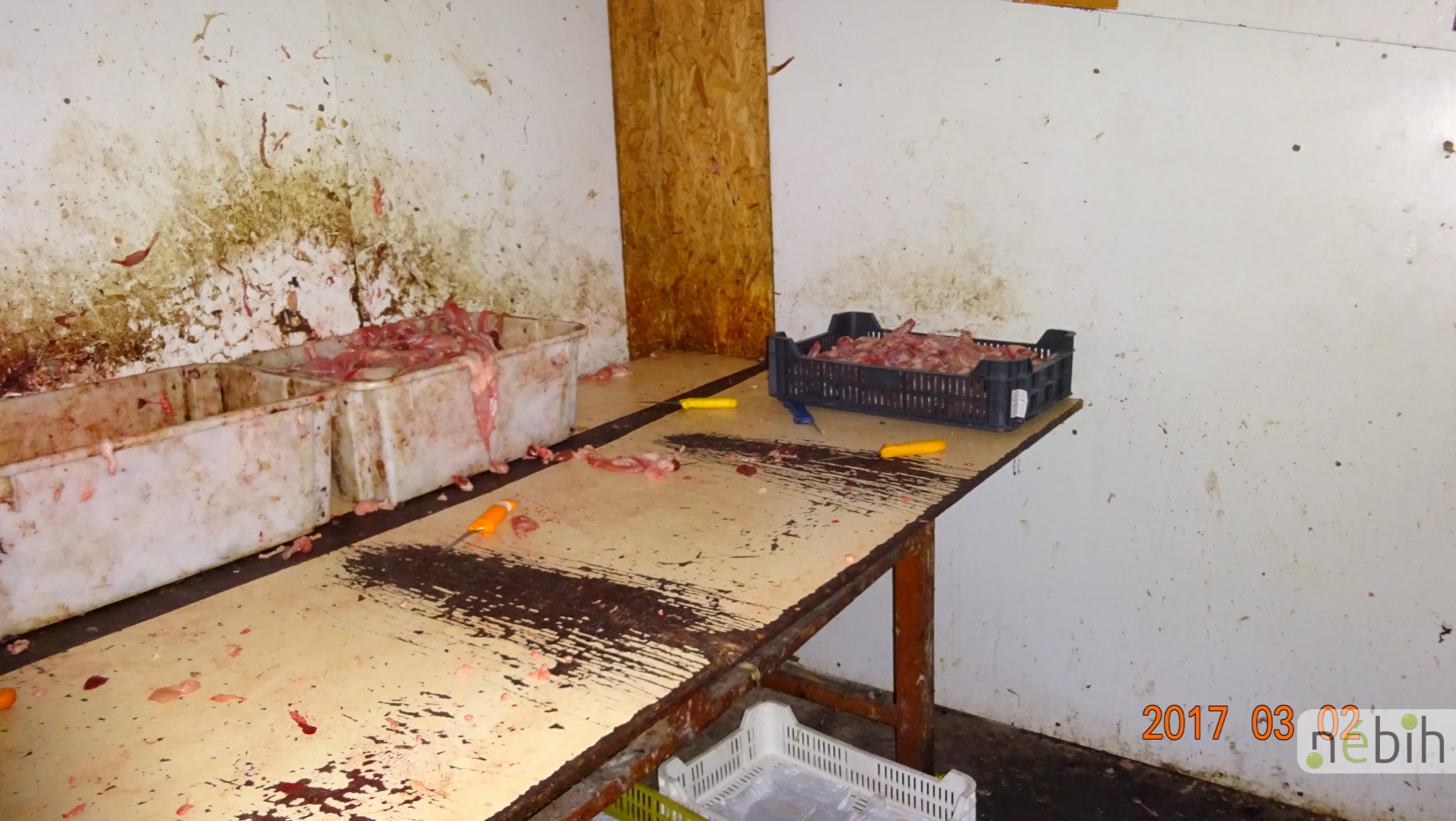 A telephely alkalmatlan állateledel előállítására – őszintén szólva bármilyen emberi munkavégzésre is – hiszen sem folyóvíz, sem öltöző, de még megfelelő mellékhelyiség sem áll a dolgozók rendelkezésére. Az ellenőrzés során a falak és a padló vérrel szennyezett volt, utóbbi egyébként nem is mindenütt mosható.