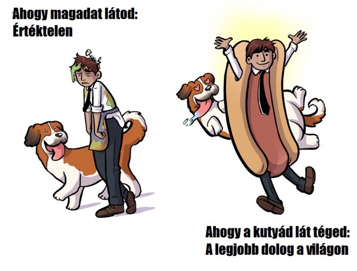 Ilyenkor egy rakás szerencsétlenségnek vagy egyenesen csődnek érzi magát. Ebből nem mindig könnyű felállni, de van megoldás! Ha a kutyád szemén nézed magad egy picit, máris más megvilágításba kerülnek a dolgok. Nem kell persze átesni a ló túloldalára sem, de segíthet visszahúzni egy egészséges szintre az énképet. Azért, mert valami nem sikerült, attól még értékes vagy: