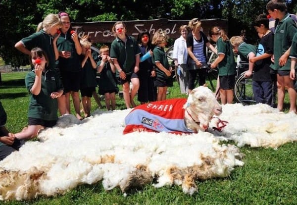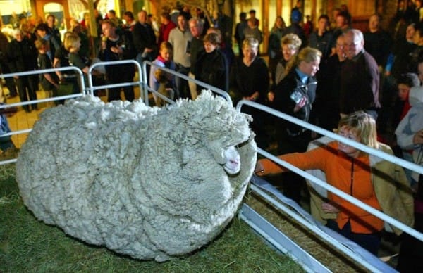 A lenyírt gyapjú súlya kb. 27 kg volt, ami általában 20 férfiöltönyt tesz ki!