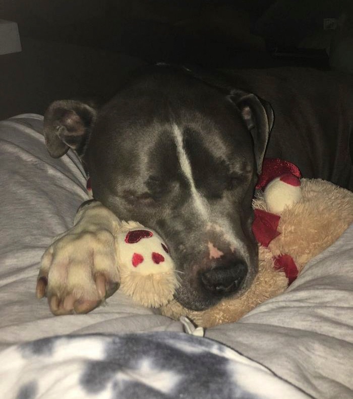 Miután Blue átment a viselkedési teszteken, Jennifer örökbe fogadta. Így lett a síró pitbullból egy mosolygós kedvenc.