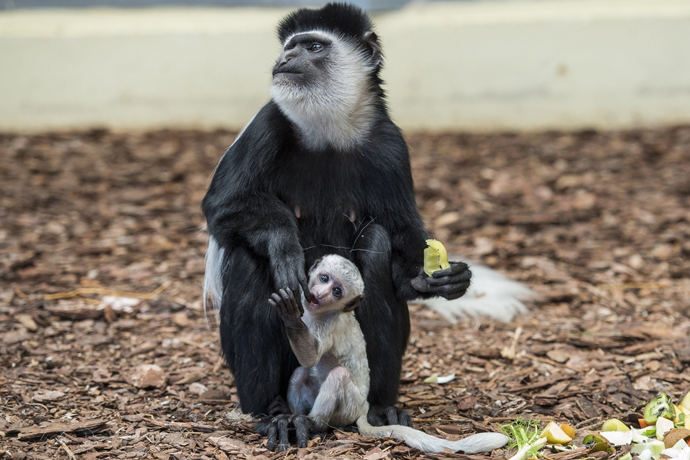 A Veszprémi Állatkertben épp a minap született zászlósfarkú kolobusz, ilyen helyes: