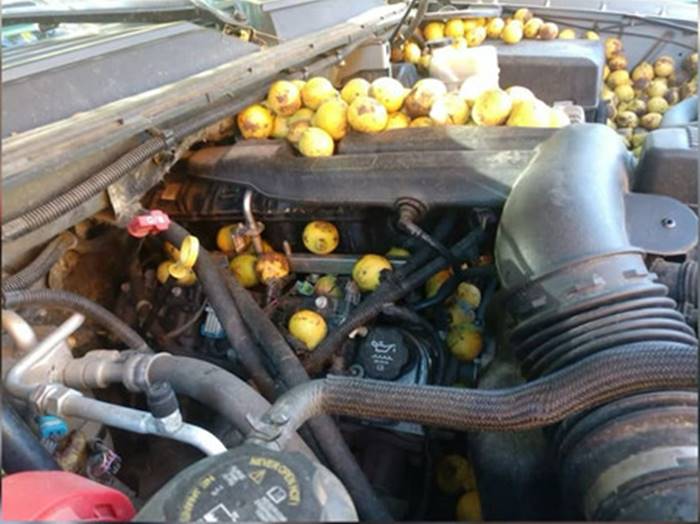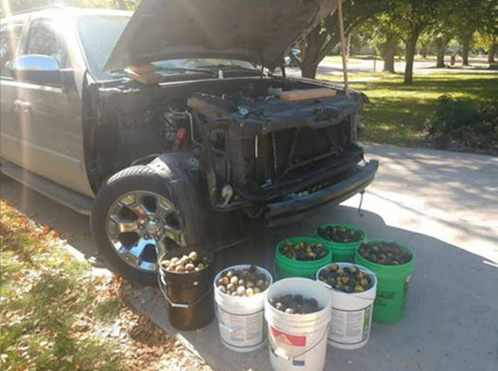 Ez lehet az első alkalom, amikor egy Chevrolet Avalanche hűtőszekrényként funkcionált. Ráadásul sok termés a férfi kertjéből és fájáról került a járműbe.