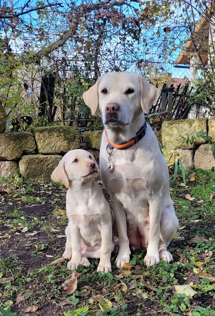 Zinának már nem lesz több kölyke, a tanulást közben és azután is folytatta. Jó dolga van, mert egy labradornak a gazdival tanulás igazi jutalom. Tud vakvezető hámban vezetni, vagyis az alapítvány érzékenyítő programjain segíthet, emellett kipróbálta magát a nyomkövetésben is, amit öröm munkának él meg, ebben ugyanolyan jól teljesít, mint anyaként.