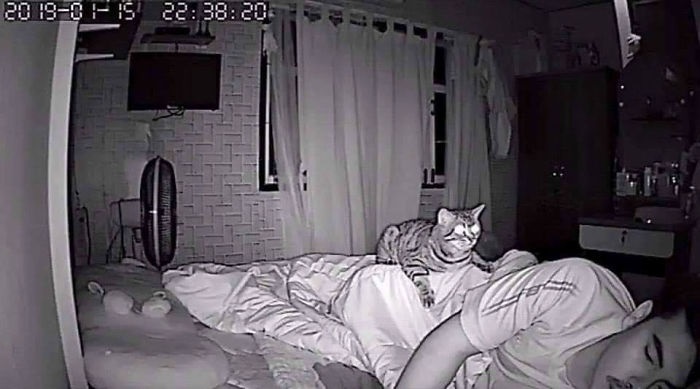 Bekamerázta a szobáját, hogy láthassa, amíg alszik, mit művel a macskája. Az eredmény fenomenális, a képek önmagukért beszélnek: