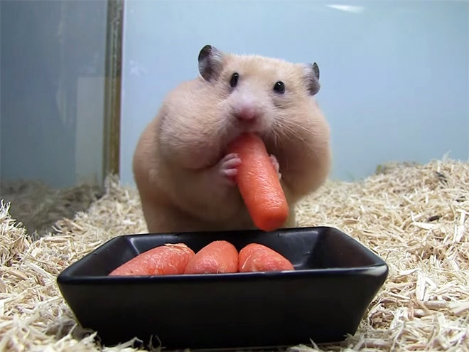 A háziasítással ugyan állandó élelemhez jutnak, ez a tartalékolós szokásuk mégis megmaradt. Sokszor tűnik egy hörcsög ‘vállasnak’, de ez leginkább a szájába tömött finomságoknak köszönhető. Bárhol és bármennyit! Ez is lehetne a jelszavuk, nézd csak: